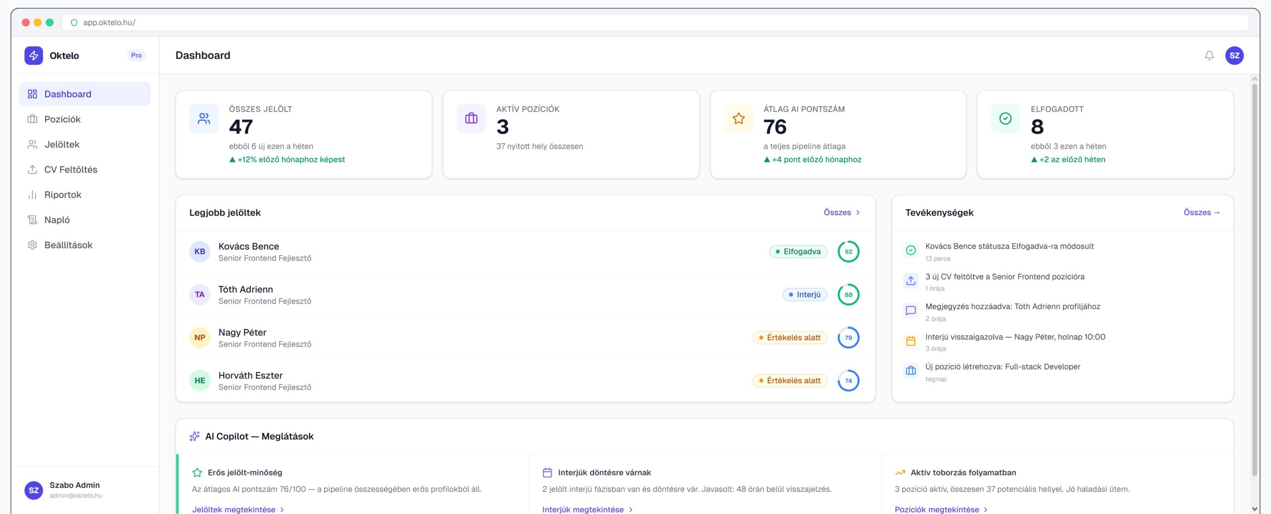 Az Oktelo az AI erejét hozza a HR csapatodhoz — ATS nélkül, de enterprise szintű analitikával.